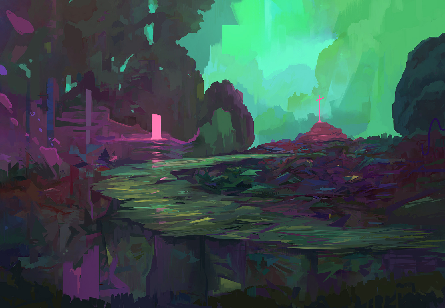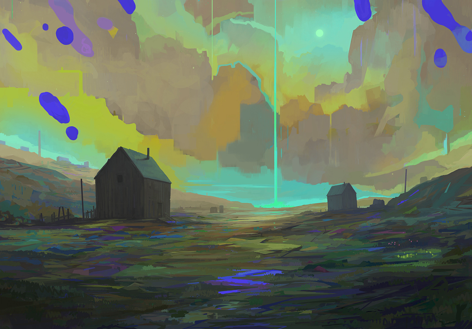 A collection of paintings from a 2023 show at Fishlab Gallery titled "the_lands"